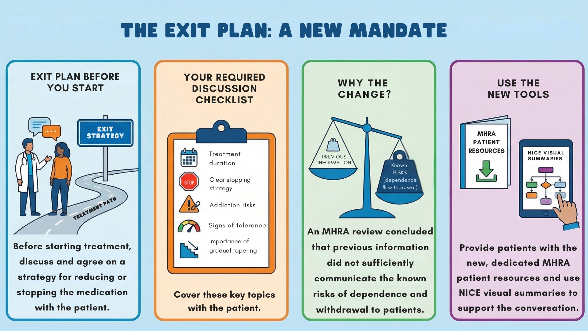 The MHRA review concluded that current information “did not sufficiently communicate the extent of the known risks.” This update attempts to fix that by ensuring the conversation happens upfront. The guidance is clear: have the conversation early. Make the exit plan before you start. Whether this will meaningfully reduce long-term dependency remains to be seen.